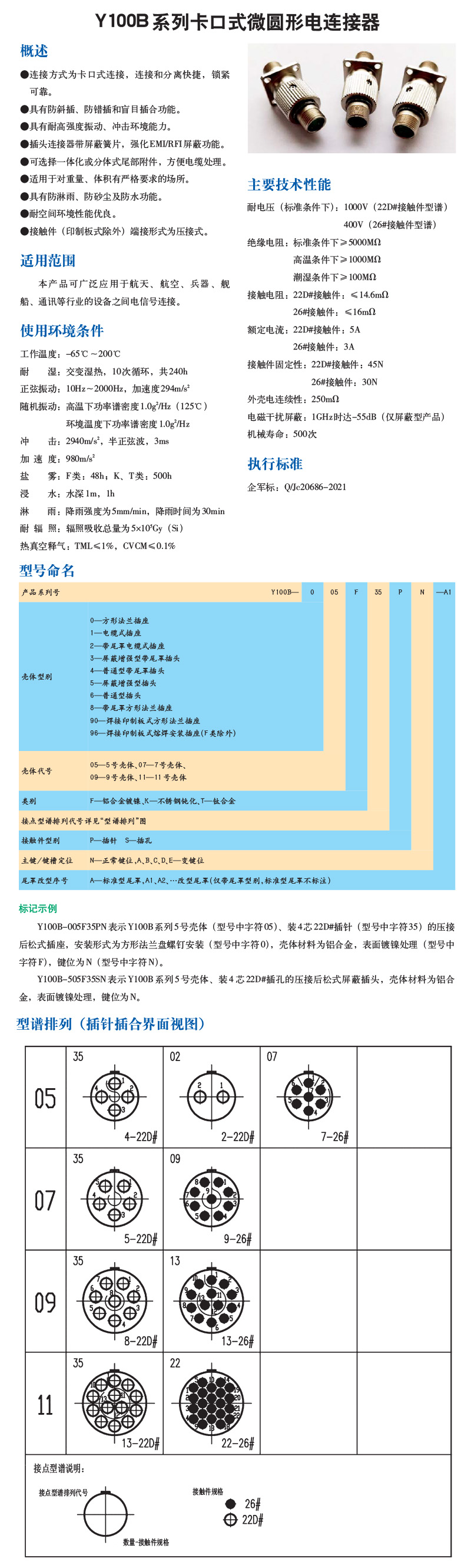 Y100A系列耐环境微圆形电连接器