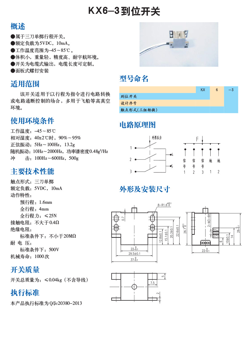 产品中心 > 特种开关 > KX6-3到位开关