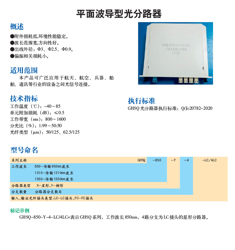产品中心 > 特种连接器 > 平面波导型光分路器