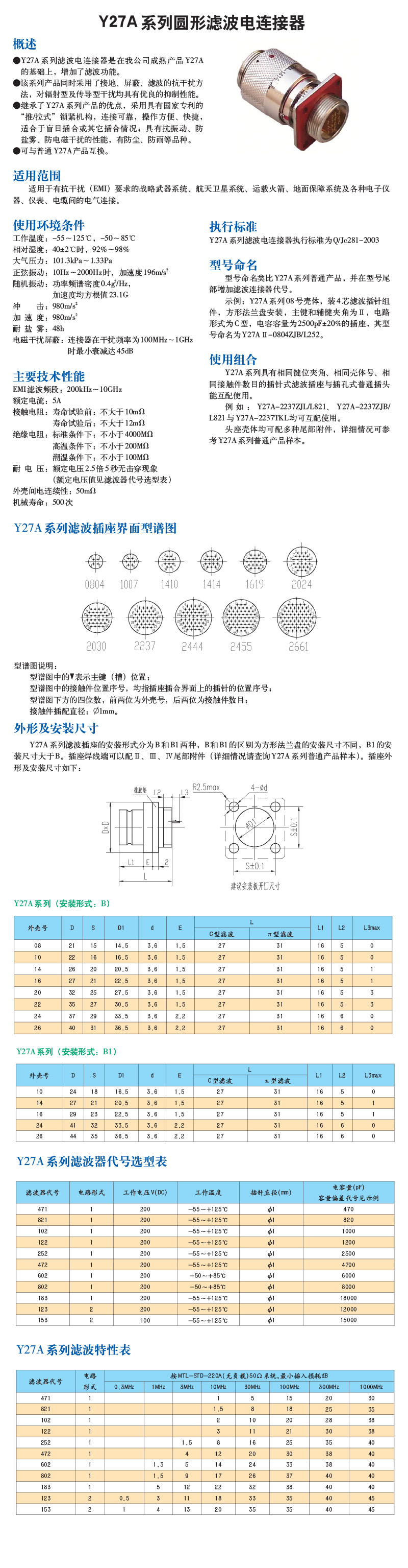 Y27A系列圆形滤波电连接器