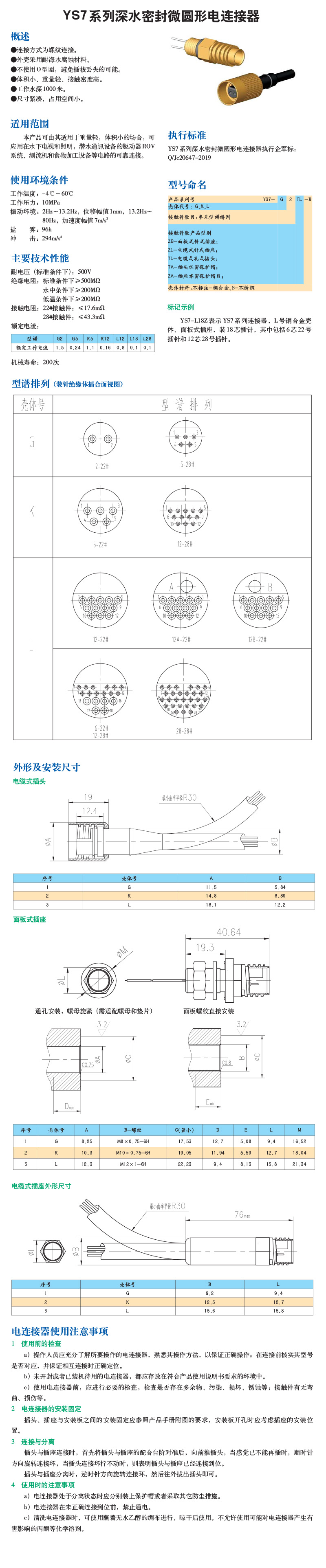 YS7系列深水密封微圆形电连接器