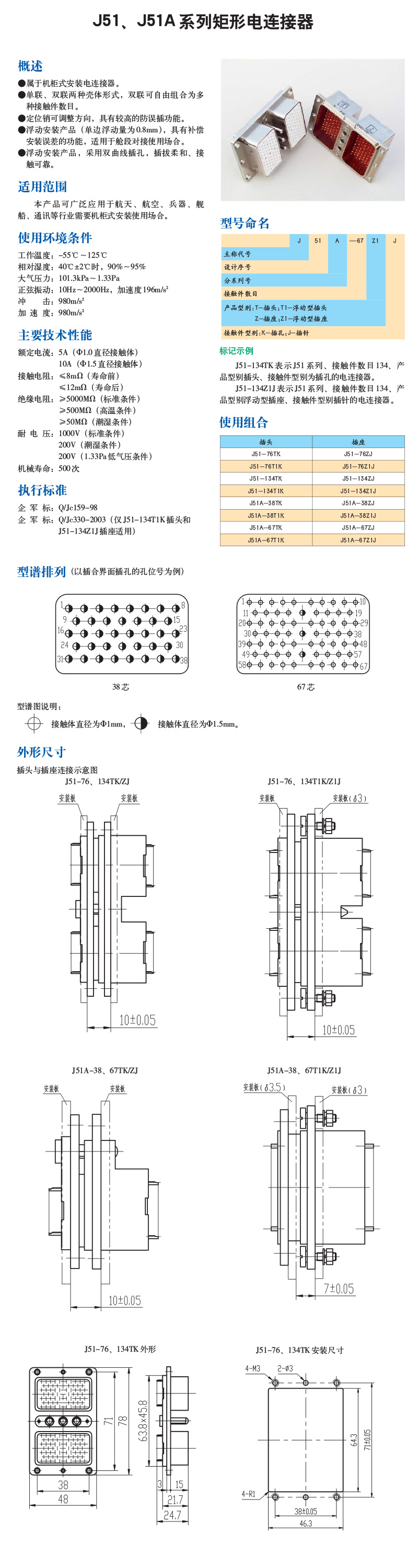 J51、J51A系列矩形电连接器